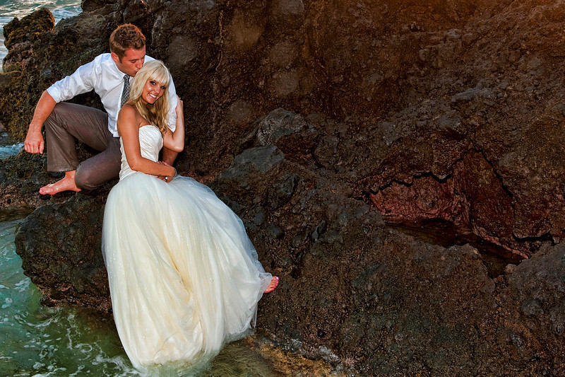 I recently did a trash the dress photo shoot with Warrick Price our wedding photographer. The shoot came as a part of our wedding package and I was pretty excited about it. From the first time I saw this type of shoot and photography I knew I would have to do it when I got married (or so I thought). It wasn’t until Warrick called me about the shoot and asked when I wanted to do it that I realized I wasn’t sure if I actually indeed wanted to do it. I mean don’t get me wrong I knew the pictures would be incredible due to the fact that we live in Maui and you can’t pay for better scenery but I wasn’t sure if I actually had the guts to “trash the dress.” My dress..my beautiful, amazing, expensive Vera Wang wedding dress in sand and salt water? My stomach instantly turned. I told Warrick I would have to think about it and get back to him and as we hung up I decided in the back of my head there was no way I was going to do it. I mean how could I? I LOVED my dress from the second I put it on, which is how this story comes full circle.