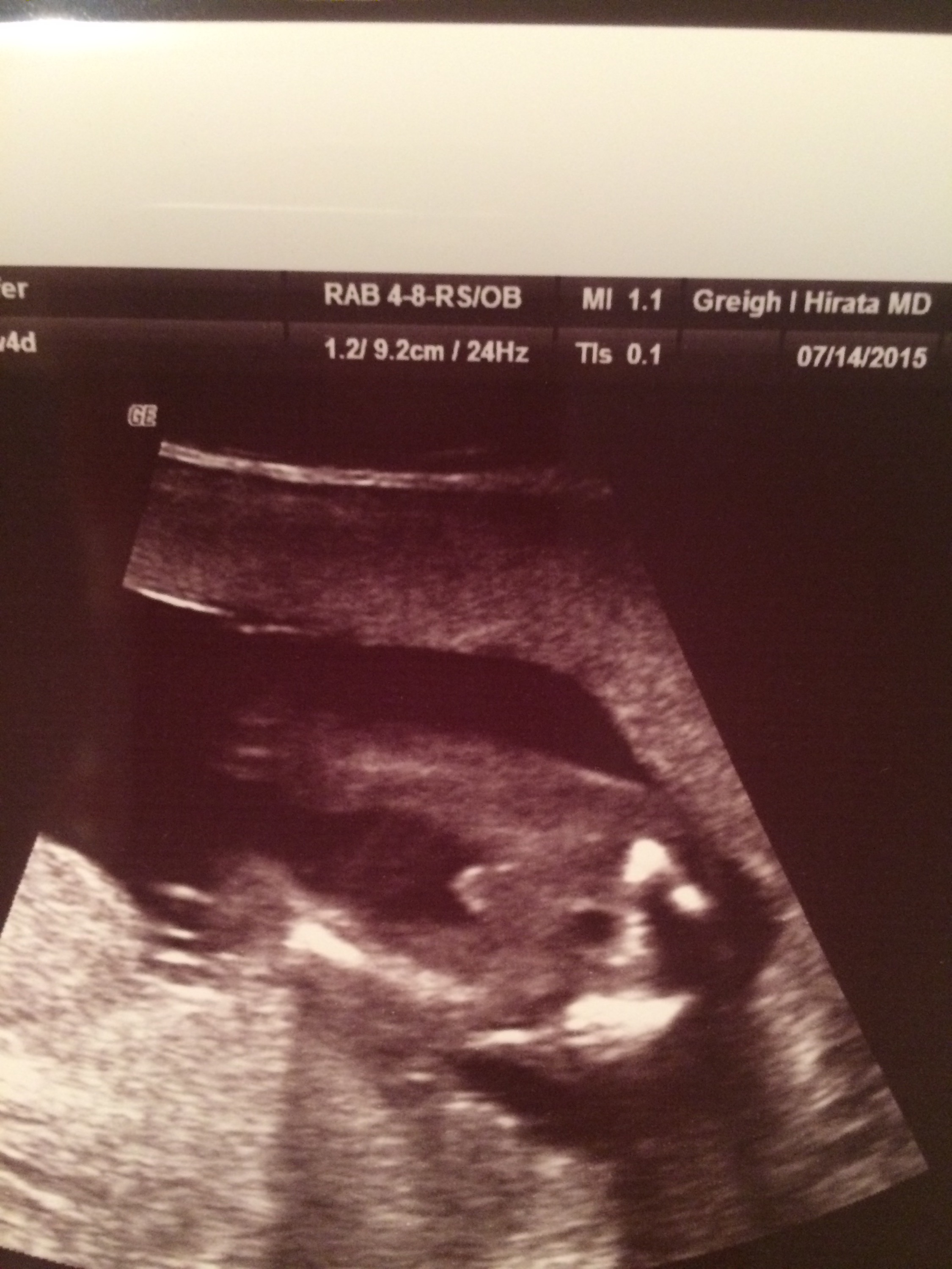 Baby Stew was moving around like crazy showing off all kinds of new moves! I could see that the spine had developed as well as full eye sockets, arms and legs. She also showed me that Baby Stew had 5 fingers on each hand! I could not believe how clear the scan was and that I could actually see the tiniest, cutest and littlest thumbs ever!